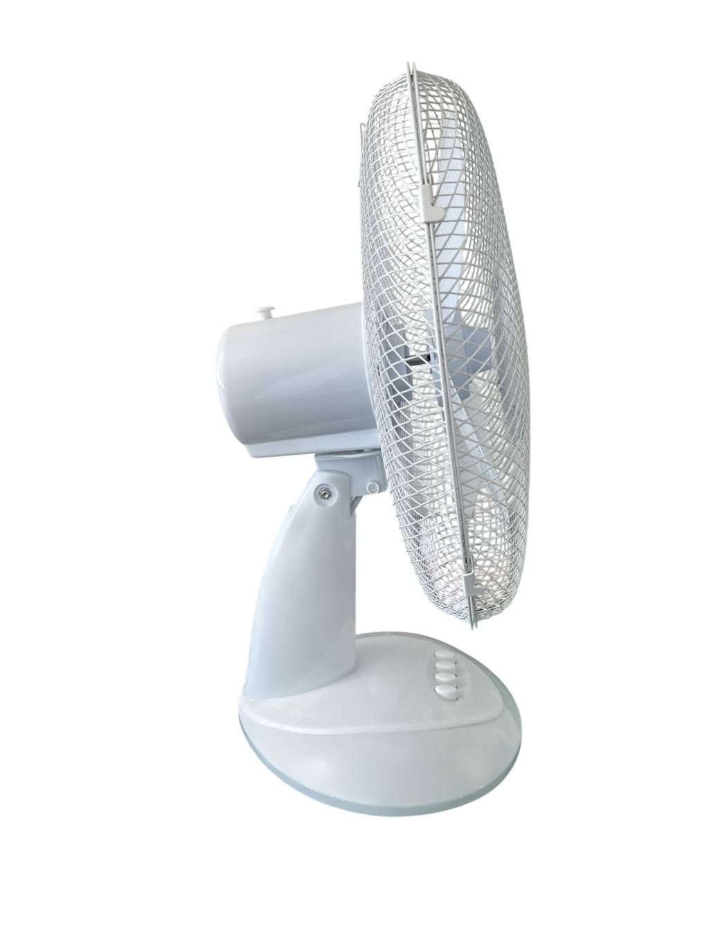 Model: DTL-40A40 cm asztali ventilátor220-240V~50Hz 50W66*14mm motor3 sebességfokozat / nyomógombos kapcsolókerek műanyag talpfém védőrács / PP (polipropilén) lapátVDE csatlakozó, 2x0,5 mm?-es tápkábelCE / RoHS tanúsítvánnyal rendelkezik