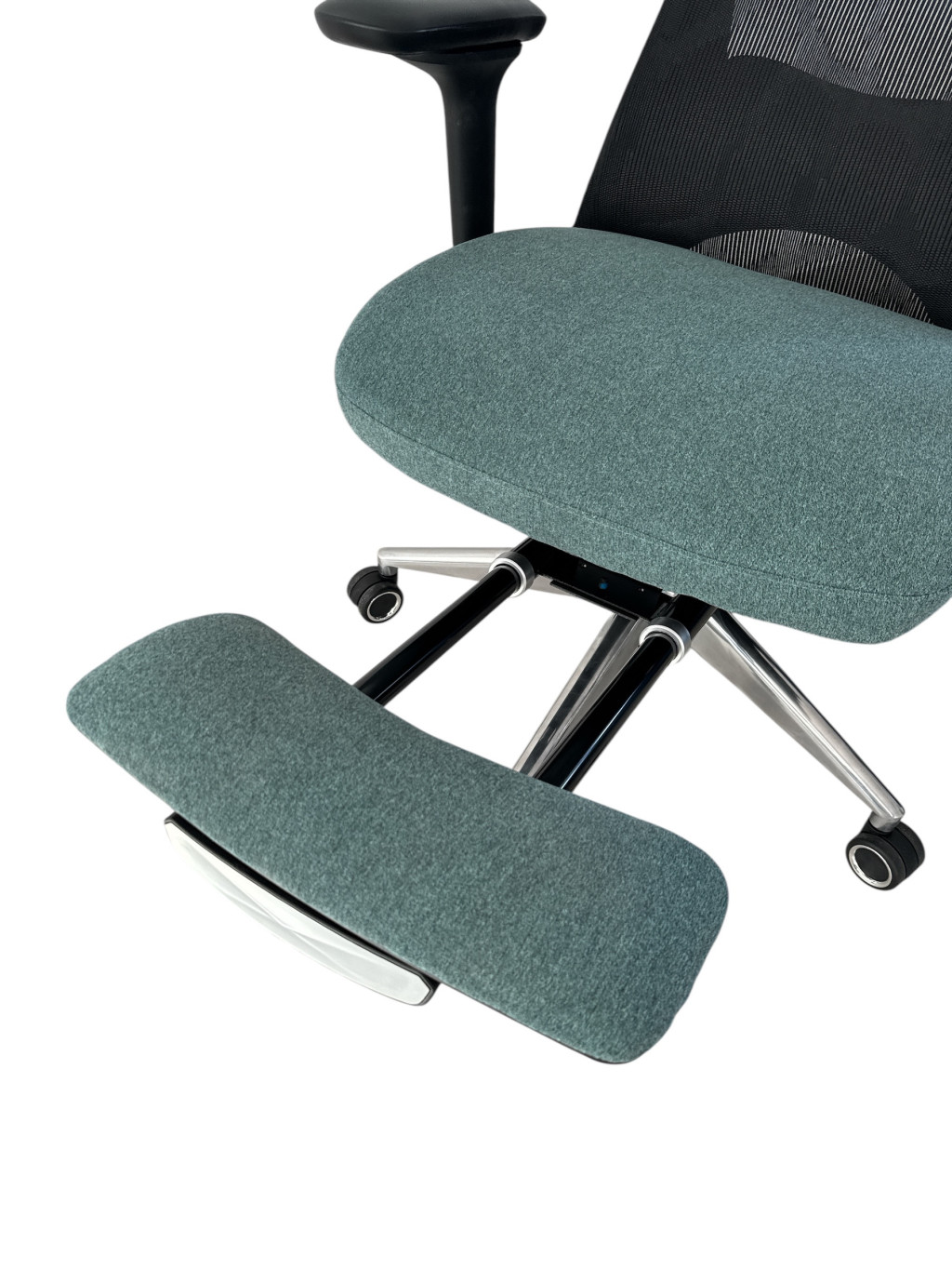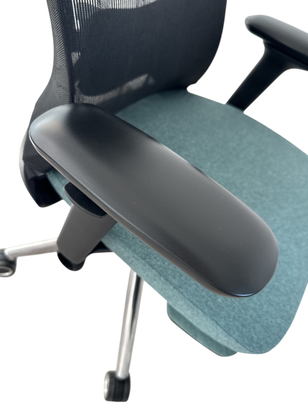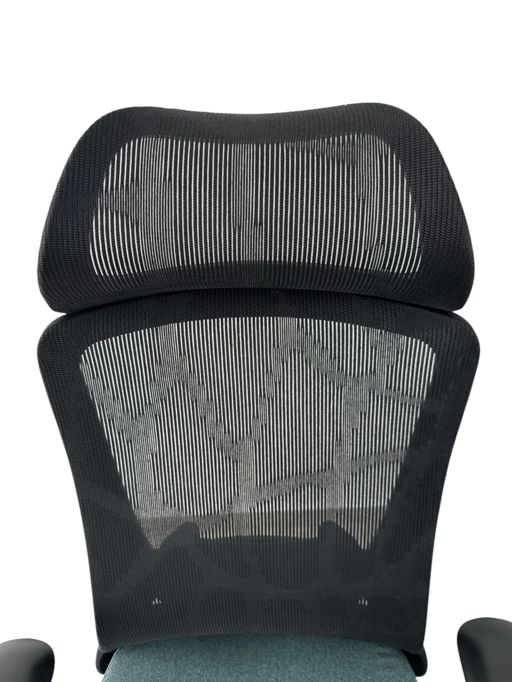 Irodai szék * Fejtámla: rögzíthető, hálós kivitel * Háttámla: légáteresztő mesh szövet, PA-nylon + üvegszálas keret * Deréktámasz: magasságban állítható * Ülőpárna: 60 kg/m3 sűrűségű, 50x53cm , formázott PU hab dekoratív burkolattal (lángálló szivacs) * Mechanika: testsúly-érzékeny, háromfokozatú hintamechanika * Kartámasz: 4D állítható, PU borítású karlap * Gázlift: 3. osztályú gázrugó * Talp: 340# alumíniumöntvény csillagtalp * Görgők: 60 mm átmérő fekete PU görgők * Lábtámasz: beépített, kihúzható lábtartó *