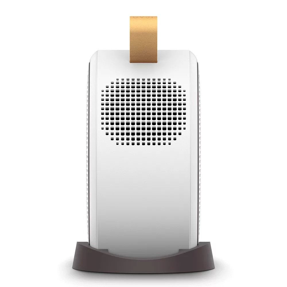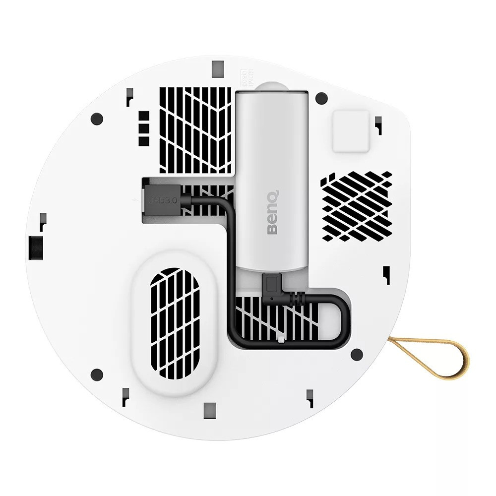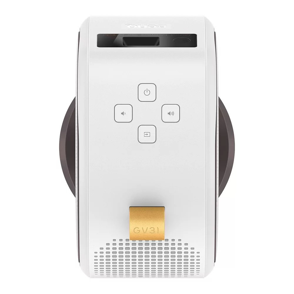 **BenQ GV31 Termékleírás**: A BenQ GV31 egy **hordozható, 1080p felbontású okos projektor**, amely 300 ANSI lumen fényerővel és **100 000:1 kontrasztaránnyal** biztosít éles és részletgazdag képet. * A 2.1 csatornás hangrendszer két **4W-os középtartományú hangszóróval** és egy **8W-os mélynyomóval** kiváló hangminőséget nyújt. * A projektor **135°-os szögben forgatható mágneses talpán**, így rugalmasan beállítható a vetítési szög, akár a mennyezetre is. * Az **automatikus fókusz** és a **+-40°-os automatikus függőleges trapézkorrekció** egyszerű beállítást tesz lehetővé. * A beépített **Android TV dongle hivatalos Netflix támogatással** és vezeték nélküli vetítési lehetőségekkel rendelkezik, beleértve a **Chromecast** és **AirPlay kompatibilitást**. * A projektor **USB-C csatlakozón keresztül** támogatja a **DisplayPort** és a **Power Delivery** funkciókat, valamint akár **180 perc videólejátszást** biztosít beépített akkumulátorával.