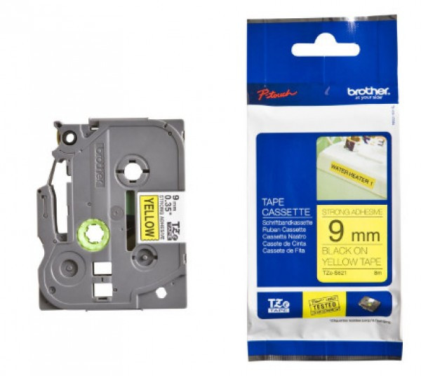 **TZe -S621 ERŐS tapadású laminált címkeszalag tartós feliratok nyomtatásához.** * Szalag típusa: Erős tapadású laminált * Szalag szélessége: 9 mm * Szalag hossza: 8 m * Szalag színe: Sárga * Felirat színe: Fekete