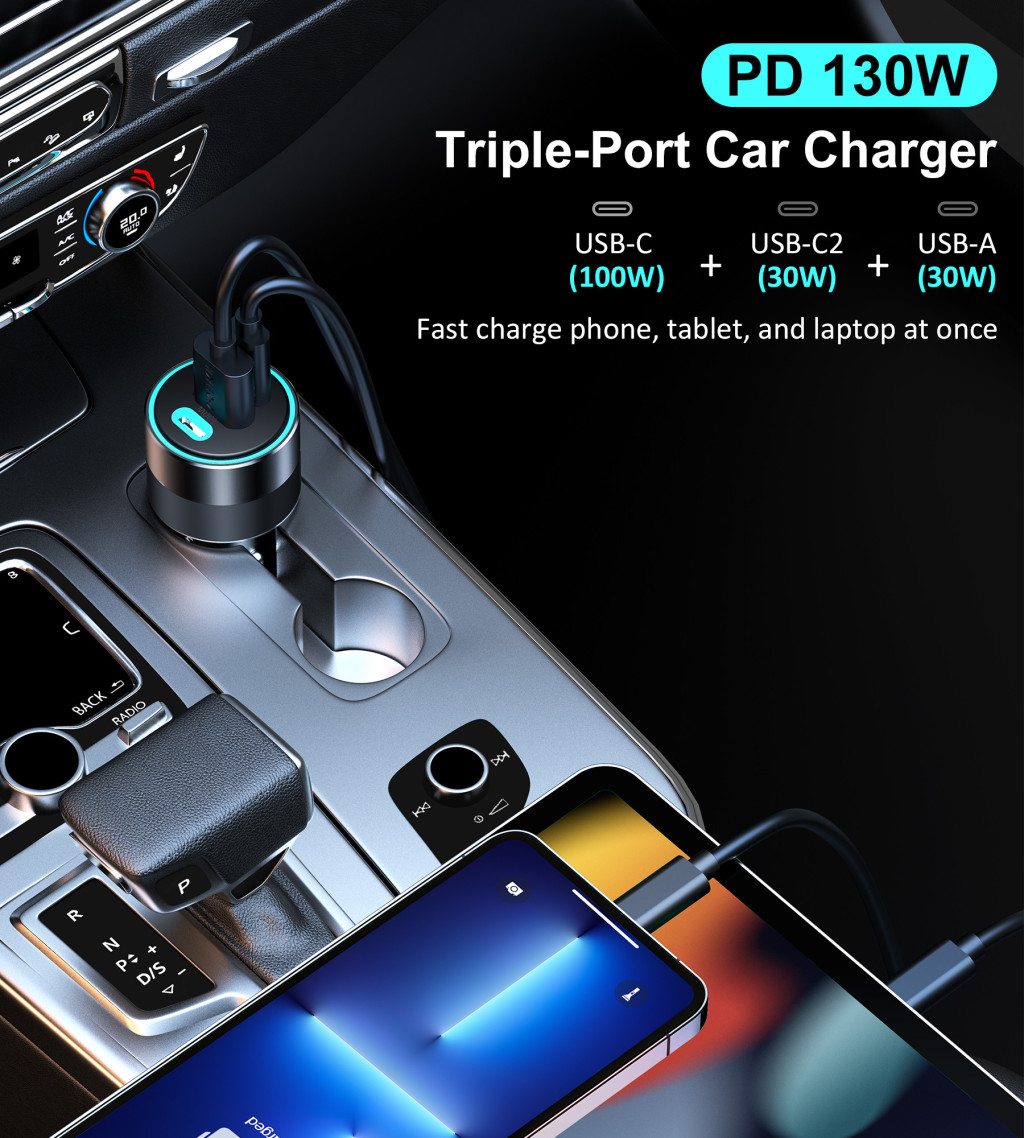 TC0011 * Szín: Fekete * Típus: Szivargyujtós telefontöltő * Anyaga: Alumínium, PC * Teljesítmény: 130W * Kimeneti teljesítmény: * USB-C1: 5V/3A, 9V/3A, 12V/3A, 15V/3A, 20V/5A (100W Max) *USB-C2: 5V/3A, 9V/3A, 12V/2,5A (30W Max) * USB-A: 5V/3A, 9V/3A, 12V/2,5A (30W Max)