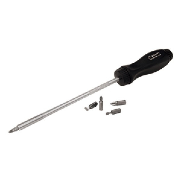 Screwdriver-Magnetic Ratcheting Long/ Snap-onTM 5 bit set - 3/16"; 9/32" Flat Tip/#1; #2; #3 Phillips ACR Bits