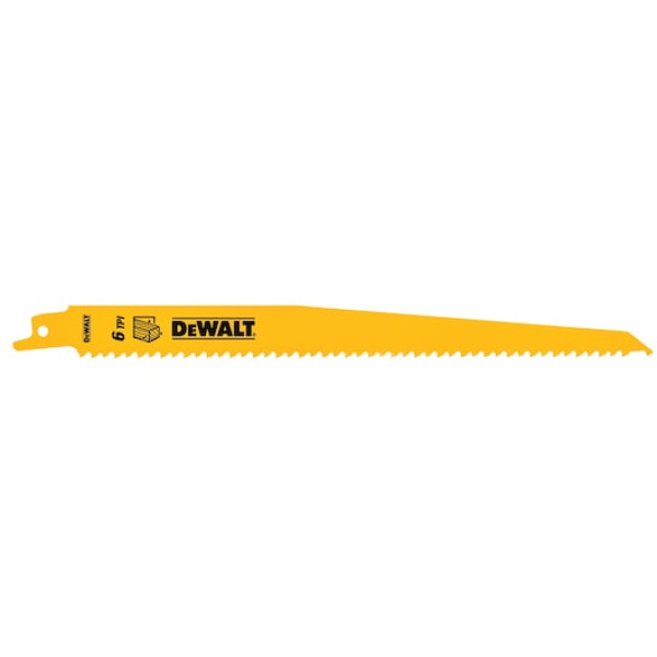 DT2349-QZ *Bi-metál orrfűrészlap készlet, fa vágásához, 228 mm, 6 TPI, 5 db *Teljes hossz: 228 mm *Fogosztás: 6 TPI *Alkalmazás: fa vágása *Anyag: bi-metál *Kiszerelés: 5 db *Tárolás: kartondoboz