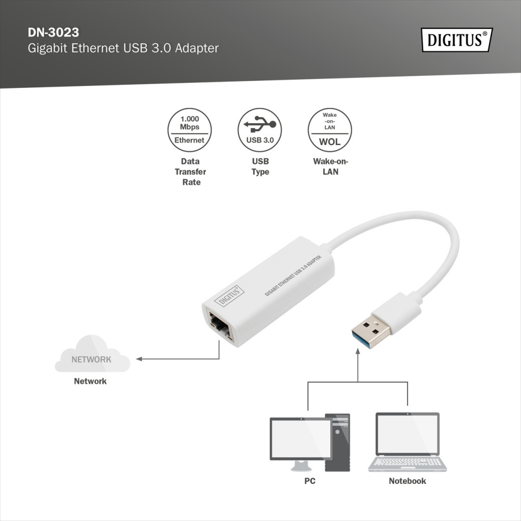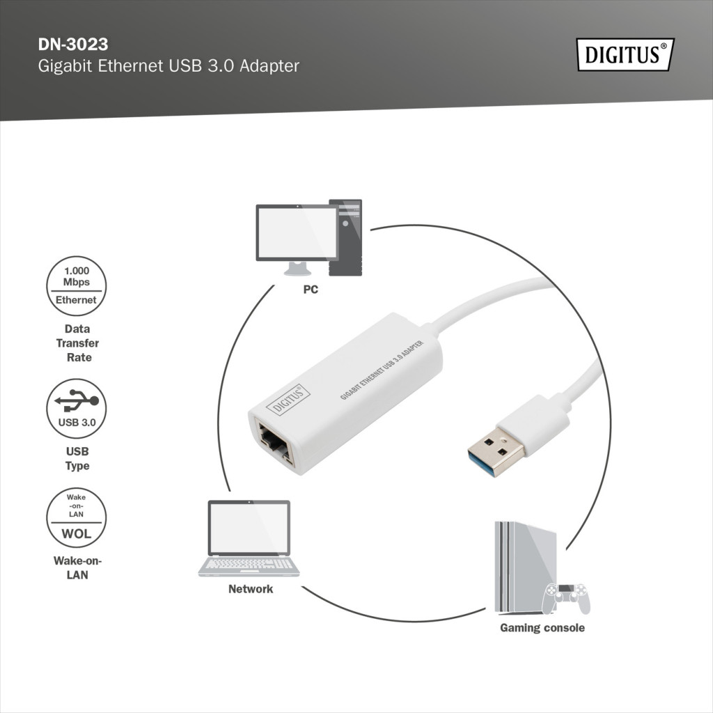 DIGITUS DN-3023 vezetékes USB 3.0 Gigabit Ethernet adapter