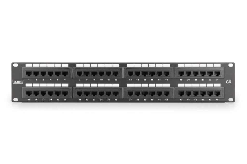 DIGITUS DN-91648U 19 2U 48port Cat.6 kompakt fekete árnyékolatlan patch panel