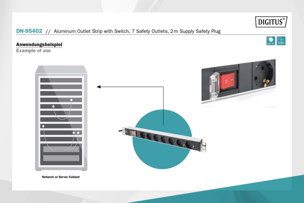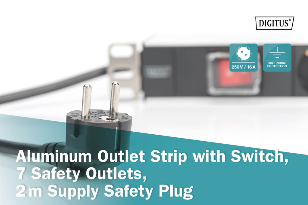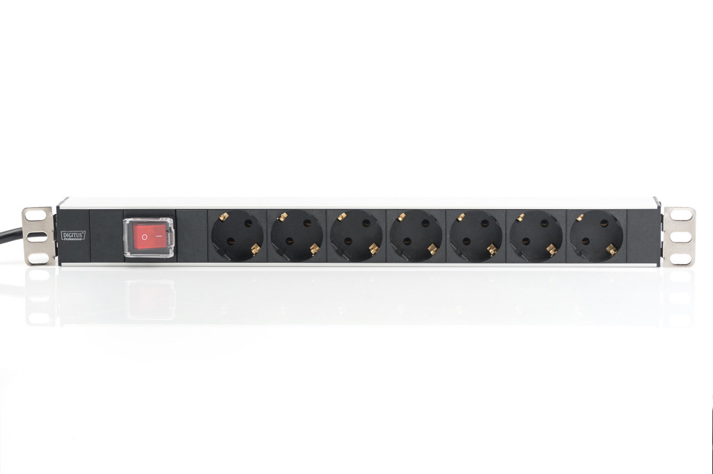 DIGITUS DN-95402 19 1U rack alumínium 7xSchuko dugaljas kapcsolós hálózati elosztó