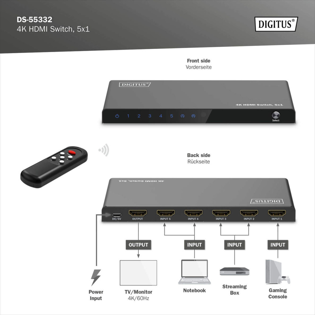 DIGITUS DS-55332 HDMI 4K 60Hz 5x1 Switch