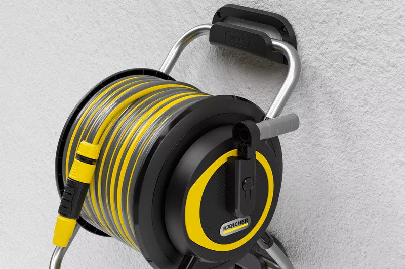 Egyedülálló gyakorlatiasság. Kettős funkcionalitás. Ez a tömlődob egyaránt használható a tömlő falon történő tárolására és a kertben történő mobil használatra. A fúvókák és szórófejek a fali tartóra akaszthatók, és mindig kéznél vannak. A HR 4.30 könnyen levehető a tartóról, és az ergonomikus fogantyúnak köszönhetően kényelmesen hordozható. A szabadon futó kurbli segítségével a kerti tömlő könnyedén feltekerhető, és rendezetten és gondosan tárolható, görcsök és bosszantó csomók nélkül. A termék a kompakt kialakítással, az alacsony súlypontnak köszönhető nagyfokú stabilitással és a 30 m-es kerti tömlővel, csatlakozókkal, csapadapterrel és fúvókával is pontokat szerez. A tömlődob teljesen összeszerelve, azonnal használatra kész. A készülék UV- és fagyálló is, így hosszú élettartamú és elég robusztus a mindennapi használathoz. A Kärcher 5 év garanciát vállal.