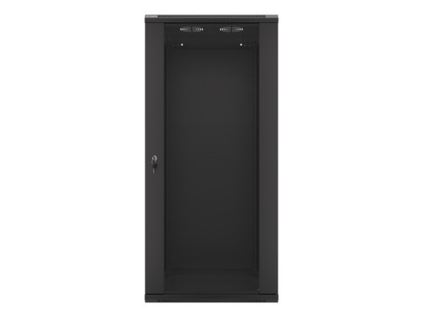 Lanberg WF01-6627-10B 19 27U SZÉL:600mm MÉLY:600mm MAG:1307mm lapraszerelt üvegajtós fekete fali rack szekrény