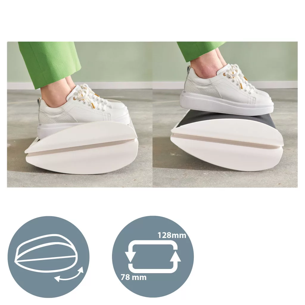 A Leitz Ergo asztali lábtámasz tökéletes a kényelmes és aktív munkaterület kialakításához. Az ülés közbeni maximális kényelem biztosítására tervezett irodai lábtartó ötvözi a hintáztatható és az állítható magasságú lábtámasz előnyeit. Az állítható magasságú irodai lábtartó 2 magassági beállítással, valamint egyik oldalról lapos, másik oldalról ívelt platformmal rendelkezik a helyes ergonomikus testtartás biztosításához. Hintáztasd lábaidat munka közben az egészséges vérkeringés és hatékonyság növelése érdekében. Ez a stílusos, minimál kialakítású, matt felületű lábtámasz hozzájárul az aktív munkaállomás kialakításához, ezáltal pozitív hatással lehet a jólétre. Más Leitz Ergo termékekkel kombinálva hívogató és rugalmas munkaterületet biztosít, hogy egész nap aktív és produktív maradhass.Ergonomikus, állítható magasságú lábtartó az egészséges testtartás elősegítésére, valamint a vérkeringés javítására a lábak megfelelő alátámasztása révénSegít csökkenteni a hosszabb ideig tartó ülésből eredő kényelmetlen érzést és merevségetÁllítható magasság a maximális kényelem és a megfelelő üléspozíció biztosítása érdekébenKét magassági beállítás (78 mm/128 mm) a lábtartó megfordításávalA hintázó mozgás aktívan tart, és lehetővé teszi a lábfej helyzetének rendszeres változtatásátEgy lapos és egy ívelt csúszásmentes platform, hogy minden lábméret kényelmesen elférjen rajtaAz elegáns kialakítás tökéletesen ötvözi a funkcionalitást a kifinomultsággalErős és tartós kialakításA Leitz Ergo termékcsalád egyesíti a stílust a prémium minőséggel a kényelmes és aktív munkakörnyezet biztosítása érdekében