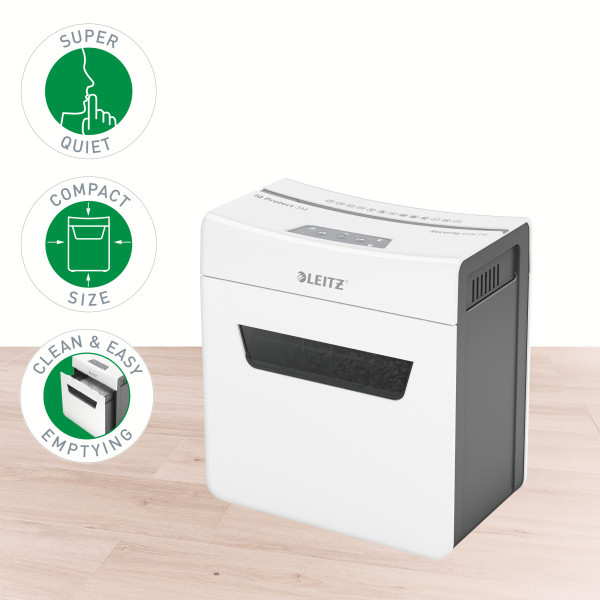 Intelligens, rendkívül csendes és kompakt. Kényelmesen és tisztán üríthető, kihúzható, 10L kapacitású hulladéktartállyal, egyszerre 3 lap megsemmisítéséhez. DIN P5 biztonsági szintű mikrokonfetti vágás. Ez a rendkívül csendes iratmegsemmisítő nyugodt munkakörnyezetet biztosít és nem zavar meg a munkádban. Tiszta és könnyű ürítést biztosító, 10 liter kapacitású, kihúzható hulladéktartállyal. Kompakt méretének köszönhetően kényelmesen elfér a lakás bármely helyiségében, vagy az íróasztal alatt. A könnyű használatot biztosító érintőgombos vezérlőpanel segítségével könnyedén semmisíthetsz meg egyszerre akár 3 A4 lapot. Védd személyes és üzleti adataidat ezzel a P5 biztonsági szintű, mikrokonfetti iratmegsemmisítővel és vigyél stílust otthonodba vagy irodádba!Kézi adagolású iratmegsemmisítő egyszerre akár 3 lap (A4, 80 g/m2) megsemmisítéséhezRendkívül csendes működés a nyugodt otthoni és irodai környezetért (Leitz olajozó lapok rendszeres használata mellett, mely alkalmazása minden harmadik hulladékgyűjtő ürítést követően javasolt)Tiszta és könnyű ürítés a kényelmes, 10 literes, kihúzható hulladéktartállyal, melyen az ablakos kialakításnak köszönhetően jól nyomon követhető a telítettség (max. 125 lap kapacitás)Kompakt és stílusos formatervezés, kényelmesen elfér bármely íróasztal alatt az irodában vagy otthonDIN P5 biztonsági szintű mikrokonfetti vágás a személyes és üzleti adatok védelme érdekébenElakadásmentes technológia a zavartalan iratmegsemmisítéshez - automatikus megállás és papírkiadás túl sok papír betöltése esetén10 perces folyamatos működési idő - ideális személyes használatra; LED fény jelzi, ha az iratmegsemmisítőnek hűlnie kellÉrintőgombos vezérlés az egyszerű és intuitív használat érdekében2+1 év garancia - regisztrálj az extra 1 év garanciáértTűzőkapcsot és gémkapcsot is megsemmisít
