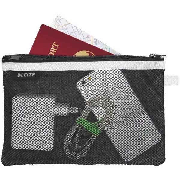 Méret: 23x15 cm. Színes és sokoldalú tárolási megoldás. Kiváló minőségű tasak 2 zsebbel személyes tárgyak - pl. útlevél, gyógyszerek, kábelek, töltők vagy piperecikkek rendszerezéséhez és tárolásához.A Leitz WOW termékcsalád tagja, mely egyedülállóan színes és stílusos megoldásokat kínál a dokumentumok rendszerezéséhez az irodában és útközbenPraktikus megoldás a kézi-, laptop- vagy iskolatáskában, bőröndben, illetve autóban tárolt személyes tárgyak rendszerezéséhezNagyobb méret (23x15cm) kézipoggyászban történő rendszerezéshezEgy hálós zsebbel, melynek tartalma jól látható és egy nem átlátszó zsebbel - a személyes, bizalmas jellegű tárgyak tárolásáhozNem mérgező, időtálló és mosható, nylon alapanyag, mely bármilyen kis méretre összehajthatóKönnyen húzható, erős cipzárTöbbféle színben és méretben a könnyű rendszerezés érdekében