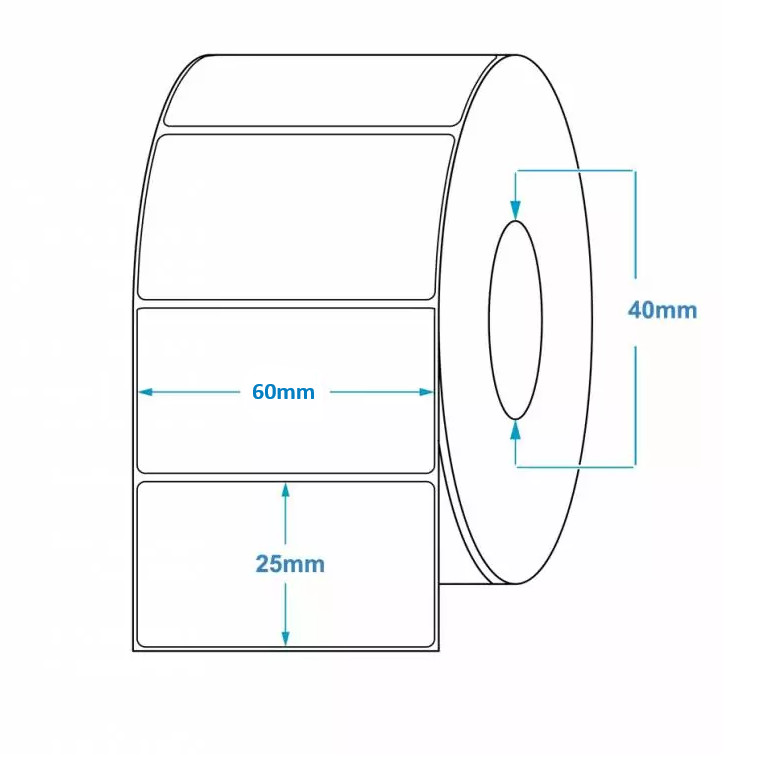 **Tekercses PAPÍR címke** * Címke magassága: 25 mm * Címke szélessége: 60 mm * Alapanyag: PAPÍR * Egy tekercsen lévő címkék száma: 2500 db címke / tekercs * Tekercs belső átmérője: 40 mm * Külső tekercsátmérő: 110 mm