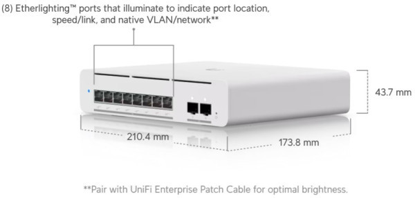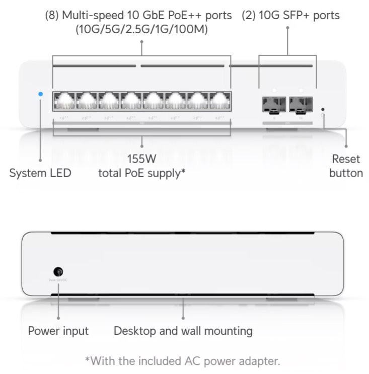 Ubiquiti UniFi USW-PRO-XG-8-POE 8x10GbE Multi-Gigabit LAN PoE port 2xSFP+ port 155W L3 menedzselhető switch