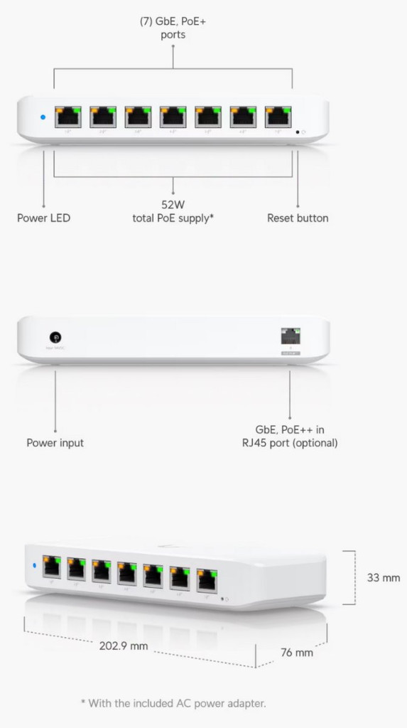 Ubiquiti UniFi USW-Ultra-60W 8xGbE LAN port 7x PoE+ (52W) L2 menedzselhető switch